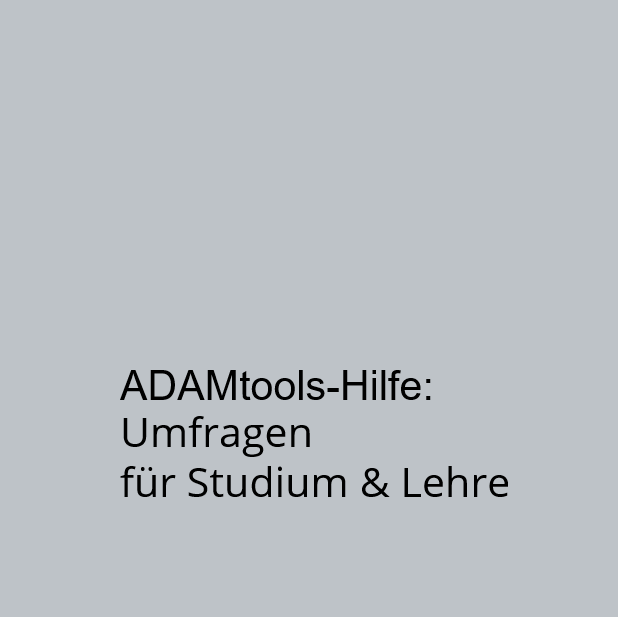 - ADAMtools ist ein Teil von ADAM und deshalb wie ADAM für Massenumfragen (mehr als 300 Teilnehmende) weder vorgesehen noch geeignet (siehe auch Nutzungsvereinbarung der Lernplattform ADAM). Bitte nutzen Sie stattdessen EvaSys oder alternative Systeme.